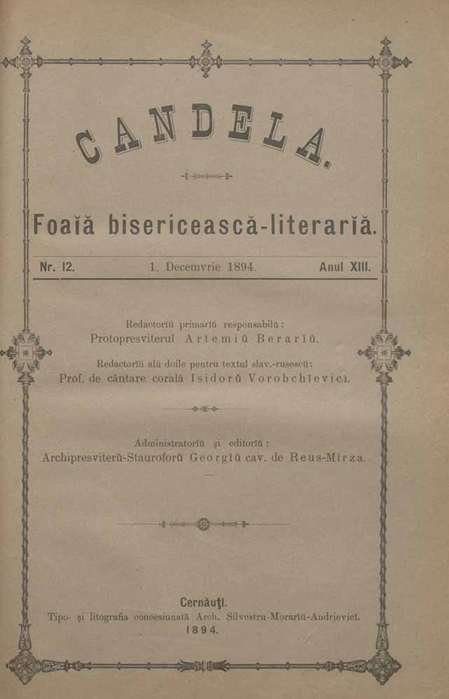 Candela, XIII, nr. în TOM: 12, decembrie, 1894, Foaiă bisericească-literariă