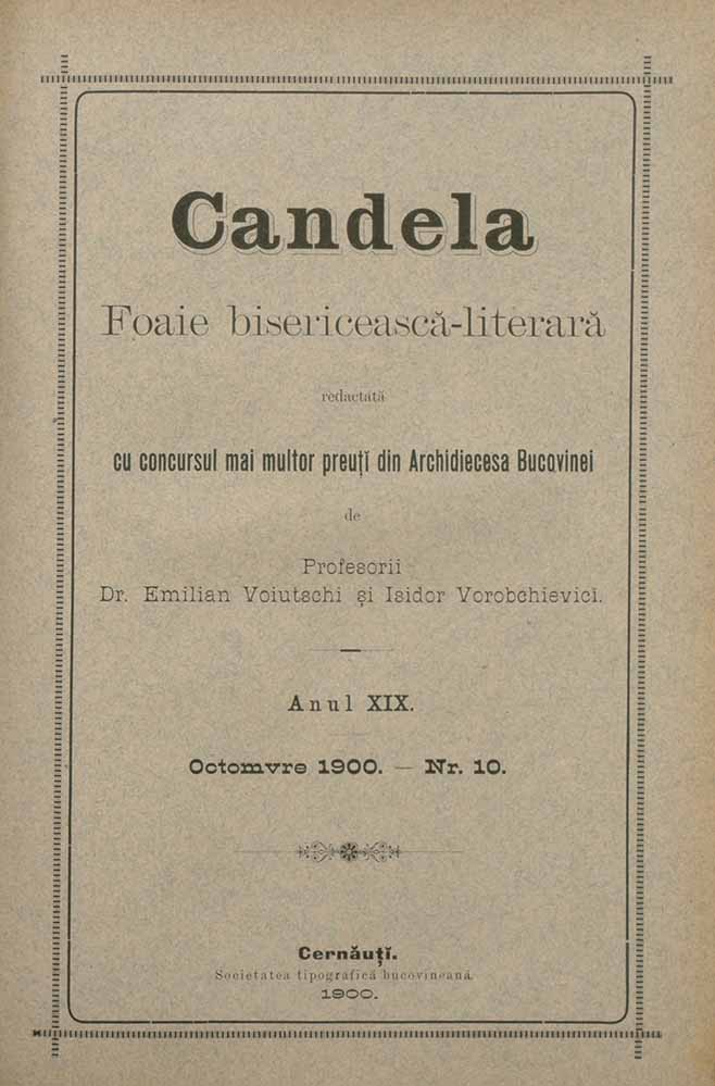 Candela, XIX, nr. în TOM: 10, octombrie, 1900, Foaie bisericească-literară