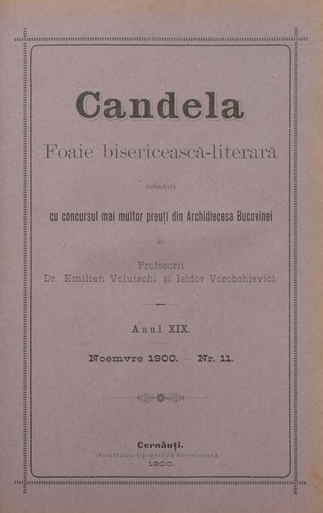Candela, XIX, nr. în TOM: 11, noiembrie, 1900, Foaie bisericească-literară