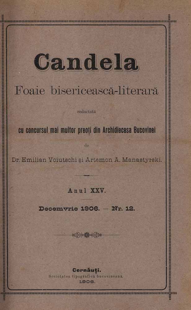 Candela, XXV, nr. în TOM: 12, decembrie, 1906, Foaie bisericească-literară