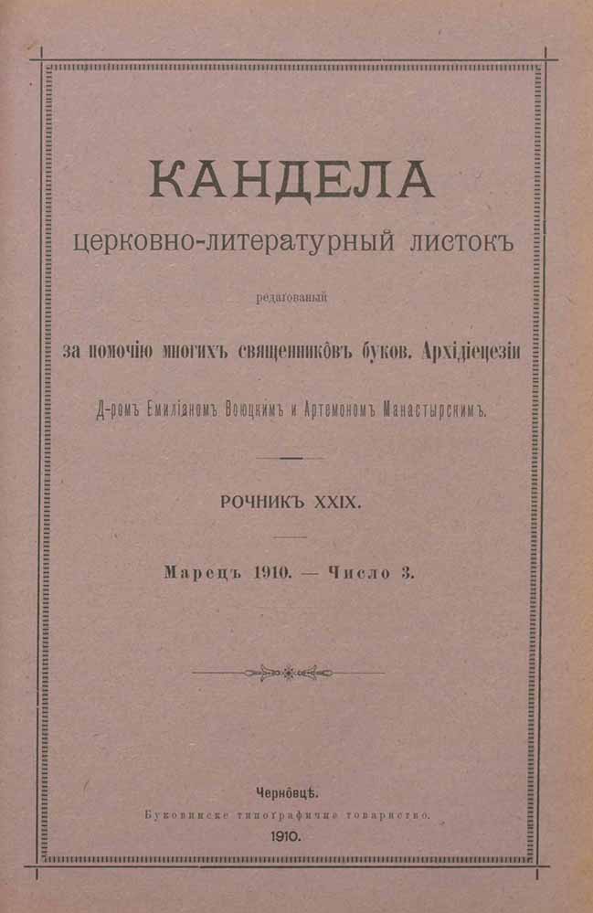 Candela, XXIX, nr. în TOM: 3, martie, 1910, Foaie bisericească-literară