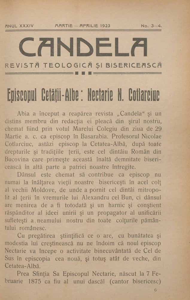 Candela, XXXIV, nr. în TOM: 3-4, martie-aprilie, 1923, Revistă teologică și bisericească