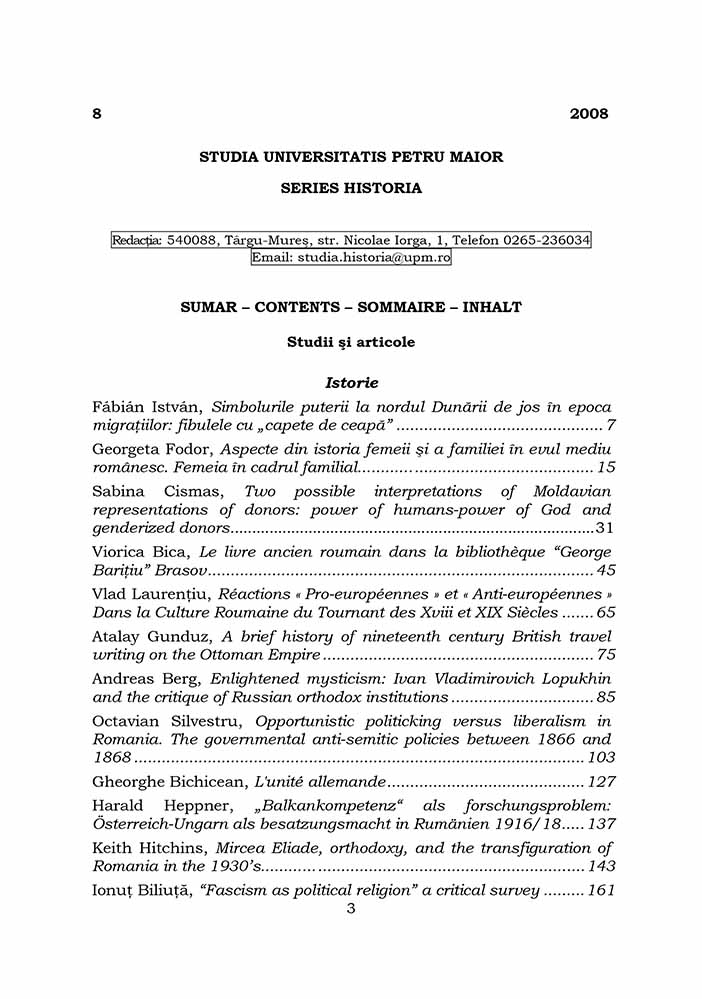 Acta Marisiensis. Seria Historia, 2008, STUDIA UNIVERSITATIS PETRU MAIOR, seria HISTORIA