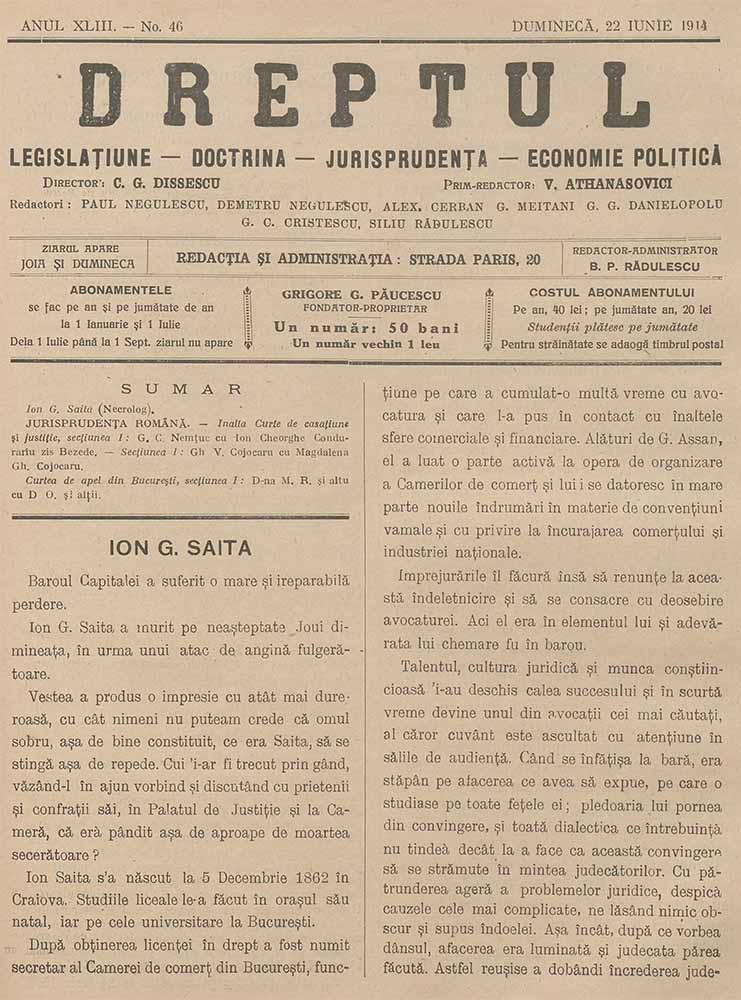 Dreptul, XLIII, nr. în TOM: 46, 22 iunie, 1914