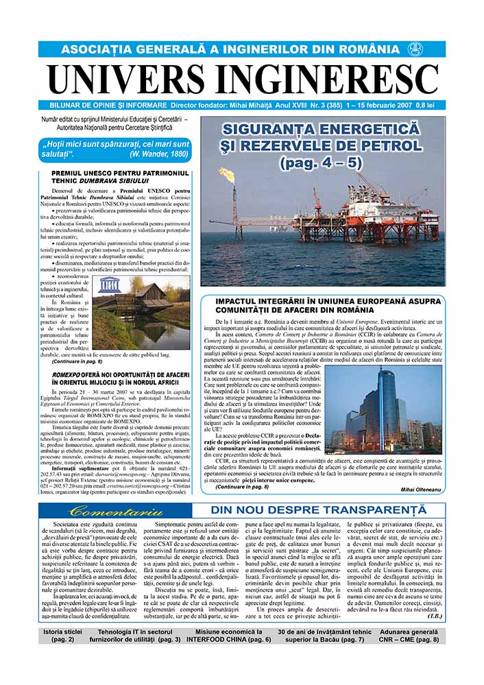 Univers ingineresc, XVIII, nr. în TOM: 3, 2007