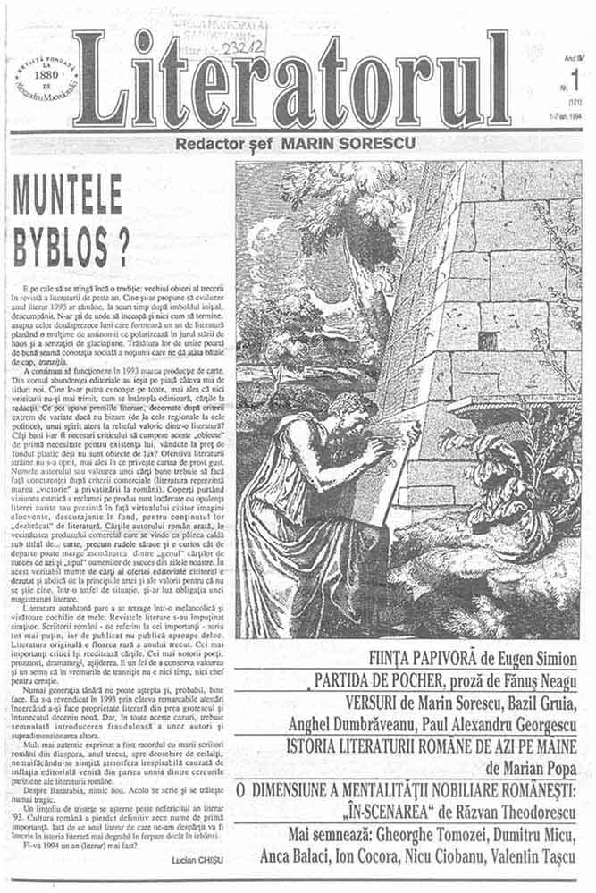 Literatorul, IV, nr. în TOM: 0, 1 - 7 ianuarie, 1994, serie nouă