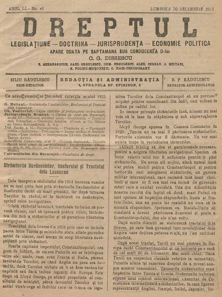 Dreptul, LI, nr. în TOM: 41, 30 decembrie, 1923 Descarcă Citește × --> Anul publicației: 1923 Publicată de: Institutul de Istorie „Nicolae Iorga” București Contributori: Institutul de Istorie „Nicolae Iorga” București Tipul publicației: periodic Vezi publicația: Dreptul Domenii asociate: Drept, Științe juridice