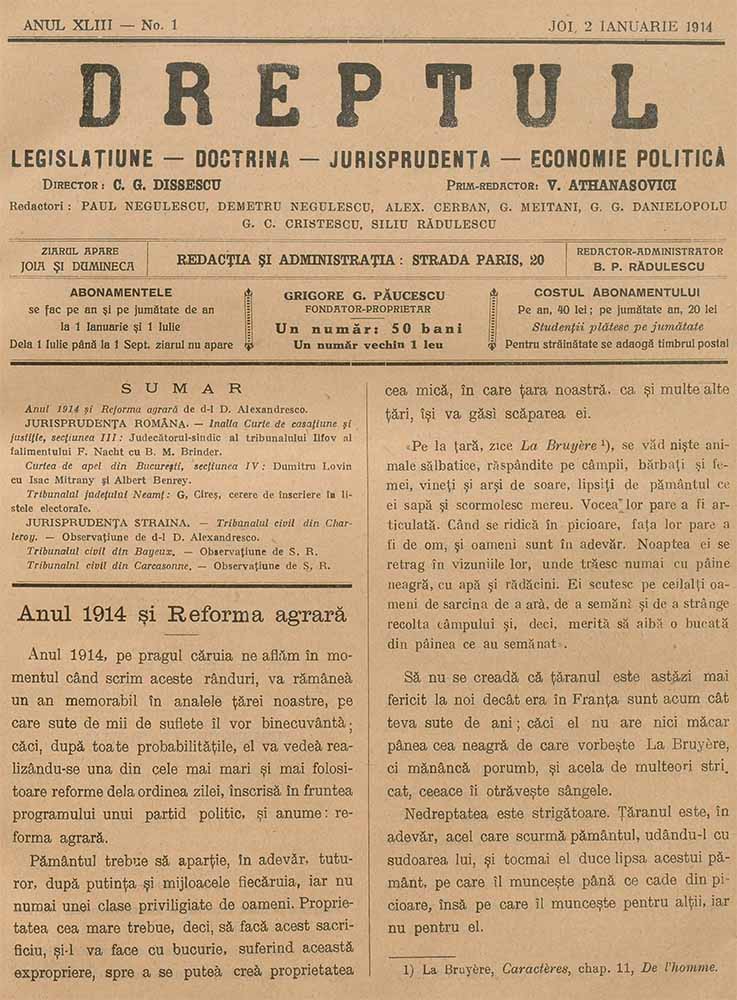 Dreptul, XLIII, nr. în TOM: 1, 2 ianuarie, 1914 Descarcă Citește × --> Anul publicației: 1914 Publicată de: Institutul de Istorie „Nicolae Iorga” București Contributori: Institutul de Istorie „Nicolae Iorga” București Tipul publicației: periodic Vezi publicația: Dreptul Domenii asociate: Drept, Științe juridice