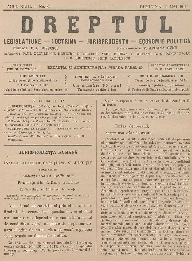 Dreptul, XLIII, nr. în TOM: 34, 11 mai, 1914 Descarcă Citește × --> Anul publicației: 1914 Publicată de: Institutul de Istorie „Nicolae Iorga” București Contributori: Institutul de Istorie „Nicolae Iorga” București Tipul publicației: periodic Vezi publicația: Dreptul Domenii asociate: Drept, Științe juridice