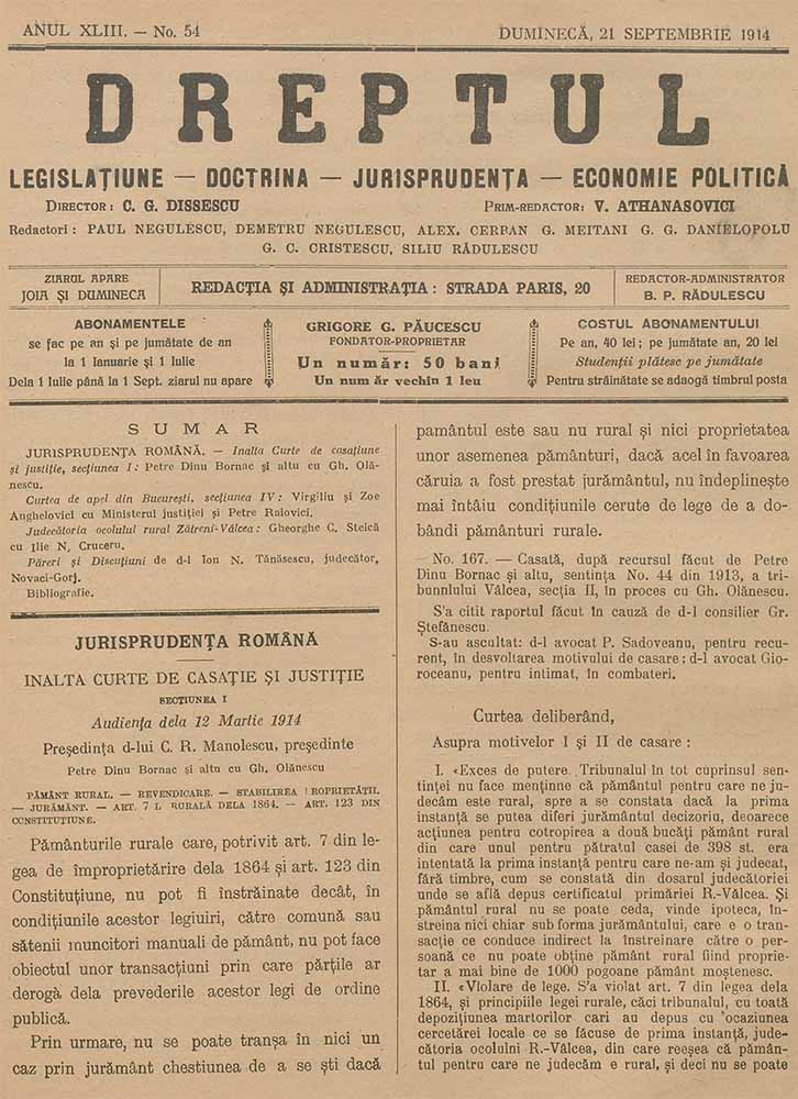 Dreptul, XLIII, nr. în TOM: 54, 21 septembrie, 1914 Descarcă Citește × --> Anul publicației: 1914 Publicată de: Institutul de Istorie „Nicolae Iorga” București Contributori: Institutul de Istorie „Nicolae Iorga” București Tipul publicației: periodic Vezi publicația: Dreptul Domenii asociate: Drept, Științe juridice