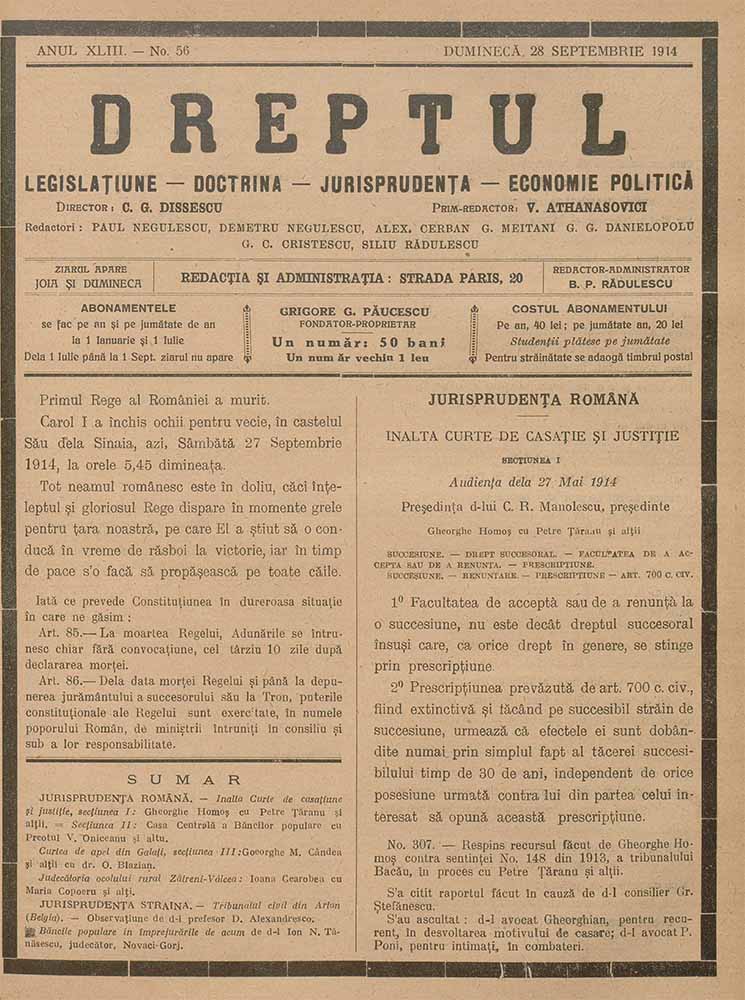 Dreptul, XLIII, nr. în TOM: 56, 28 septembrie, 1914 Descarcă Citește × --> Anul publicației: 1914 Publicată de: Institutul de Istorie „Nicolae Iorga” București Contributori: Institutul de Istorie „Nicolae Iorga” București Tipul publicației: periodic Vezi publicația: Dreptul Domenii asociate: Drept, Științe juridice