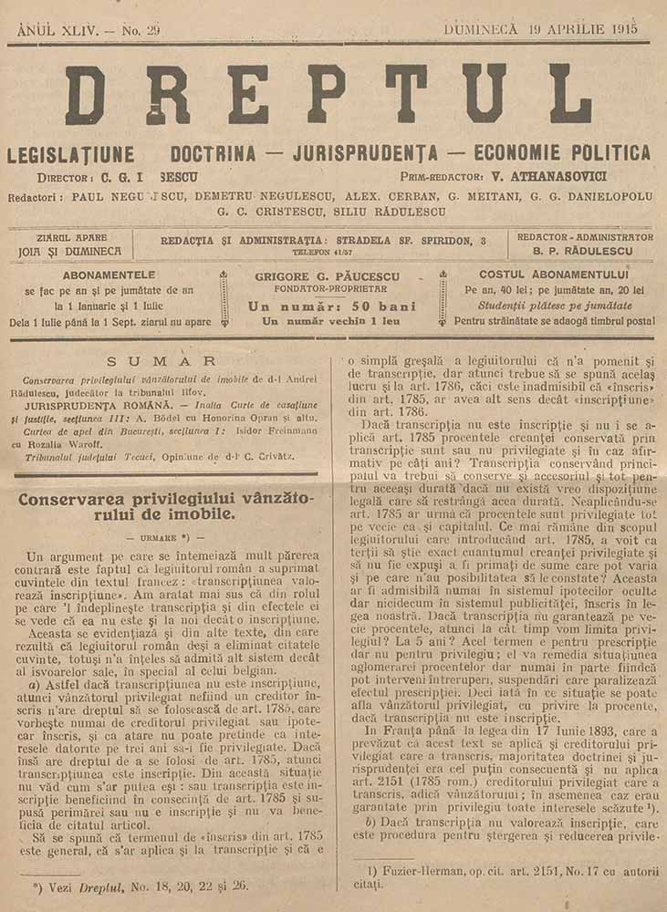 Dreptul, XLIV, nr. în TOM: 29, 19 aprilie, 1915 Descarcă Citește × --> Anul publicației: 1915 Publicată de: Institutul de Istorie „Nicolae Iorga” București Contributori: Institutul de Istorie „Nicolae Iorga” București Tipul publicației: periodic Vezi publicația: Dreptul Domenii asociate: Drept, Științe juridice