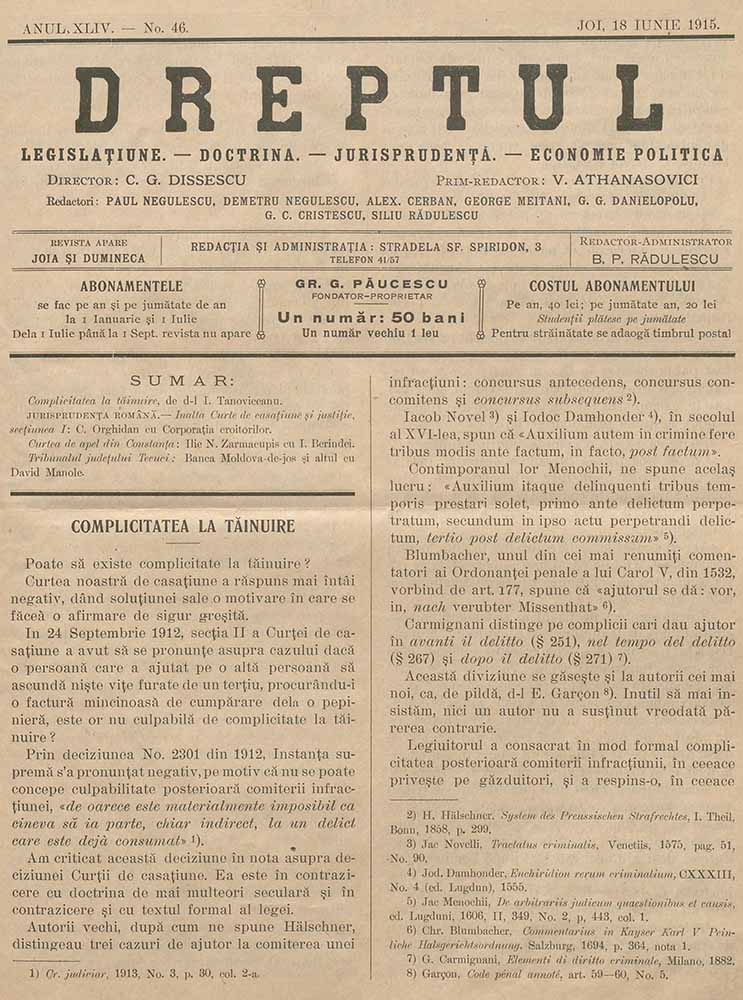 Dreptul, XLIV, nr. în TOM: 46, 18 iunie, 1915 Descarcă Citește × --> Anul publicației: 1915 Publicată de: Institutul de Istorie „Nicolae Iorga” București Contributori: Institutul de Istorie „Nicolae Iorga” București Tipul publicației: periodic Vezi publicația: Dreptul Domenii asociate: Drept, Științe juridice