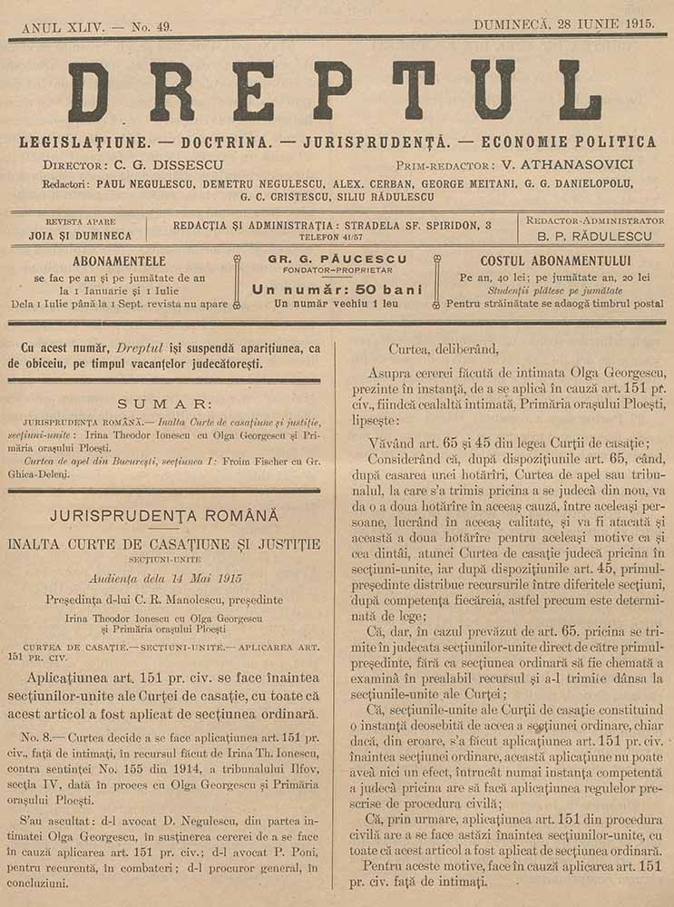 Dreptul, XLIV, nr. în TOM: 49, 28 iunie, 1915 Descarcă Citește × --> Anul publicației: 1915 Publicată de: Institutul de Istorie „Nicolae Iorga” București Contributori: Institutul de Istorie „Nicolae Iorga” București Tipul publicației: periodic Vezi publicația: Dreptul Domenii asociate: Drept, Științe juridice