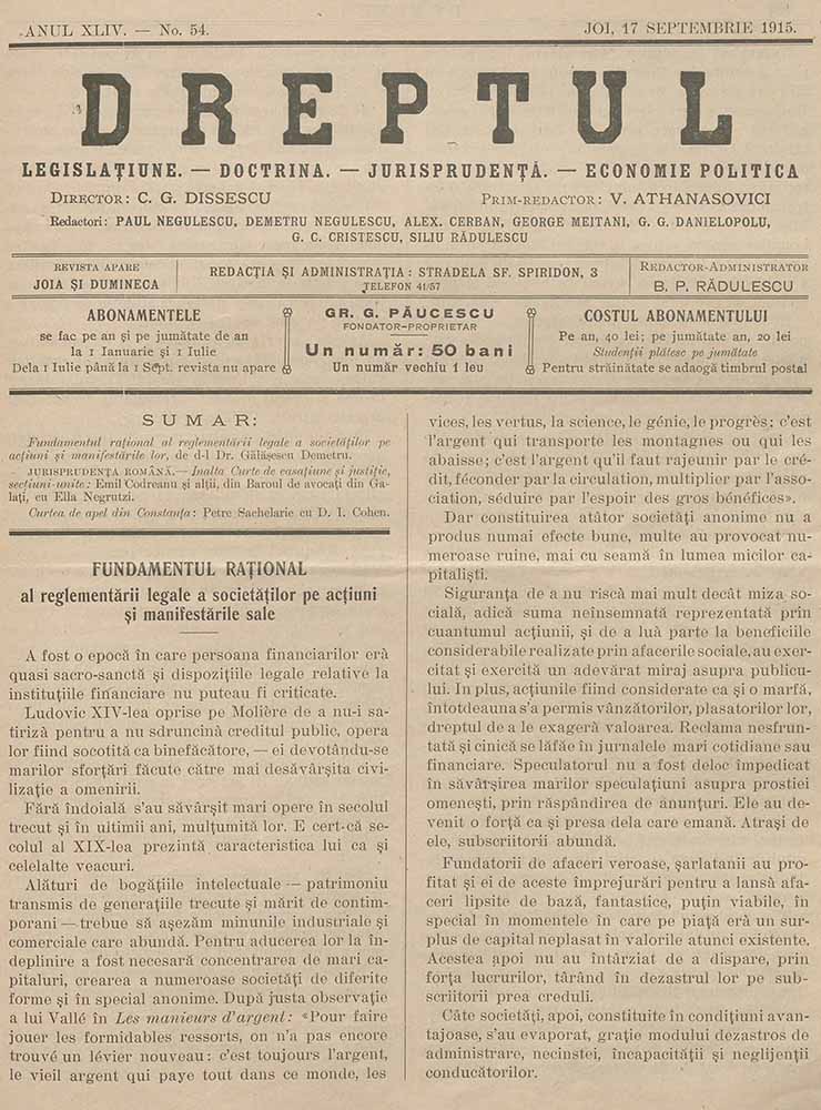 Dreptul, XLIV, nr. în TOM: 54, 17 septembrie, 1915 Descarcă Citește × --> Anul publicației: 1915 Publicată de: Institutul de Istorie „Nicolae Iorga” București Contributori: Institutul de Istorie „Nicolae Iorga” București Tipul publicației: periodic Vezi publicația: Dreptul Domenii asociate: Drept, Științe juridice