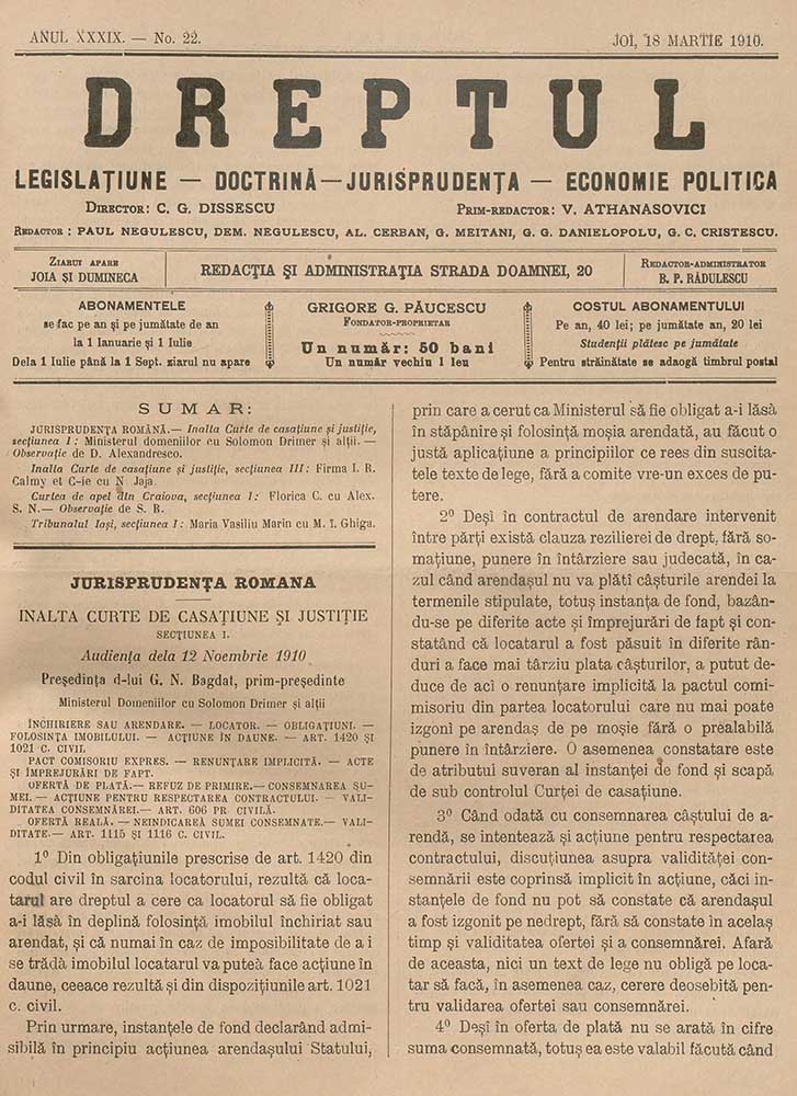 Dreptul, XXXIX, nr. în TOM: 22, 18 martie, 1910 Descarcă Citește × --> Anul publicației: 1910 Publicată de: Institutul de Istorie „Nicolae Iorga” București Contributori: Institutul de Istorie „Nicolae Iorga” București Tipul publicației: periodic Vezi publicația: Dreptul Domenii asociate: Drept, Științe juridice