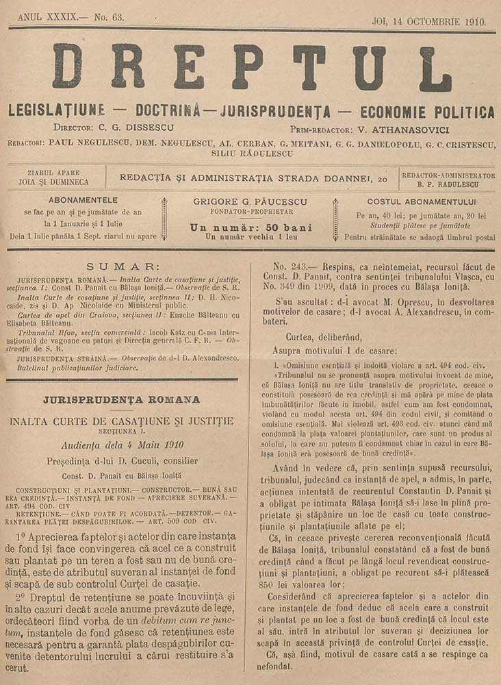 Dreptul, XXXIX, nr. în TOM: 63, 14 octombrie, 1910 Descarcă Citește × --> Anul publicației: 1910 Publicată de: Institutul de Istorie „Nicolae Iorga” București Contributori: Institutul de Istorie „Nicolae Iorga” București Tipul publicației: periodic Vezi publicația: Dreptul Domenii asociate: Drept, Științe juridice
