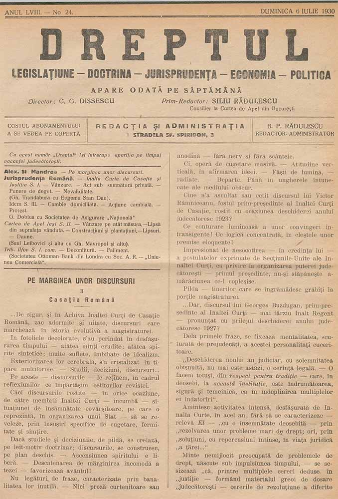Dreptul, LVIII, nr. în TOM: 24, 6 iulie, 1930 Descarcă Citește × --> Anul publicației: 1930 Publicată de: Institutul de Istorie „Nicolae Iorga” București Contributori: Institutul de Istorie „Nicolae Iorga” București Tipul publicației: periodic Vezi publicația: Dreptul Domenii asociate: Drept, Științe juridice