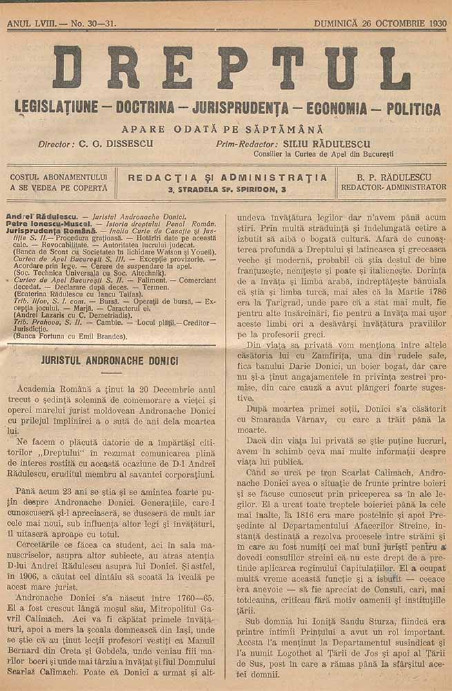 Dreptul, LVIII, nr. în TOM: 30-31, 26 octombrie, 1930 Descarcă Citește × --> Anul publicației: 1930 Publicată de: Institutul de Istorie „Nicolae Iorga” București Contributori: Institutul de Istorie „Nicolae Iorga” București Tipul publicației: periodic Vezi publicația: Dreptul Domenii asociate: Drept, Științe juridice