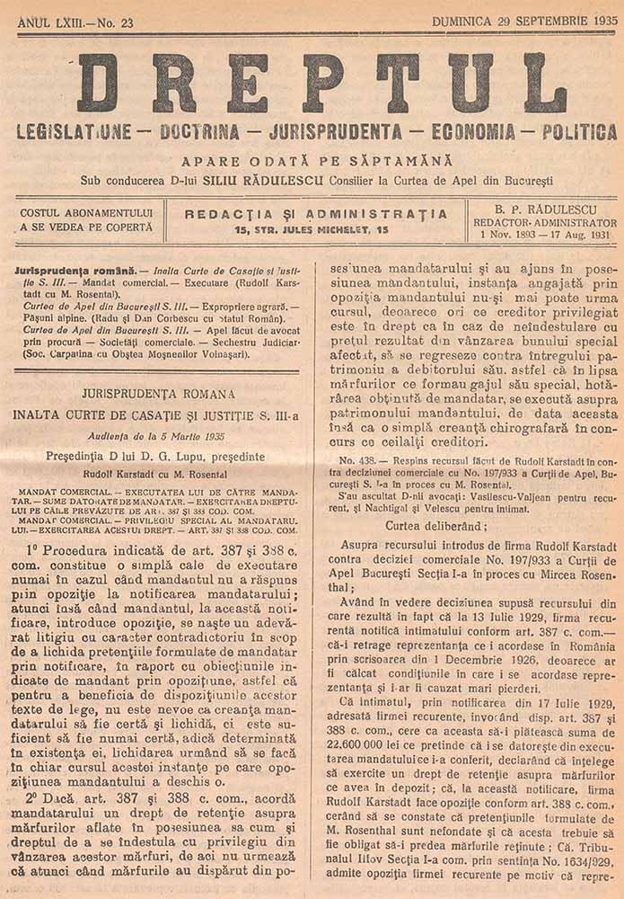 Dreptul, LXIII, nr. în TOM: 23, 29 septembrie, 1935 Descarcă Citește × --> Anul publicației: 1935 Publicată de: Institutul de Istorie „Nicolae Iorga” București Contributori: Institutul de Istorie „Nicolae Iorga” București Tipul publicației: periodic Vezi publicația: Dreptul Domenii asociate: Drept, Științe juridice