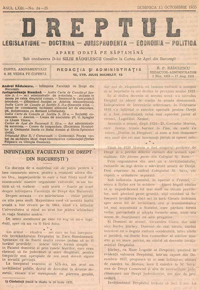 Dreptul, LXIII, nr. în TOM: 24-25, 13 octombrie, 1935 Descarcă Citește × --> Anul publicației: 1935 Publicată de: Institutul de Istorie „Nicolae Iorga” București Contributori: Institutul de Istorie „Nicolae Iorga” București Tipul publicației: periodic Vezi publicația: Dreptul Domenii asociate: Drept, Științe juridice