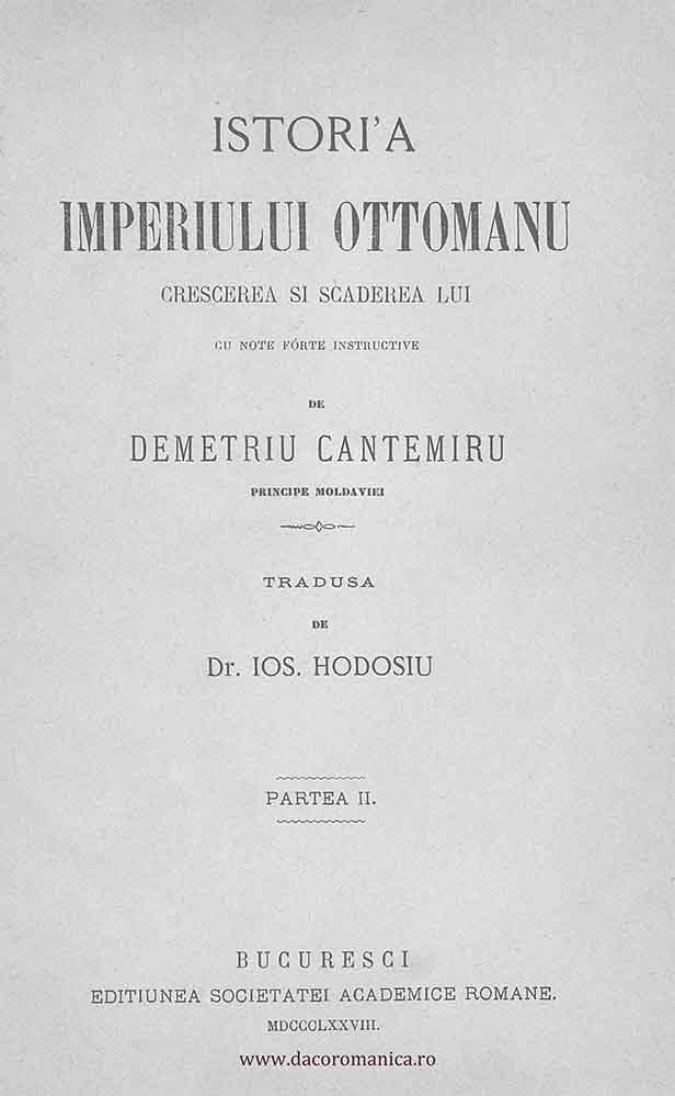 - Realizatori:  CANTEMIR, Dimitrie (autor)