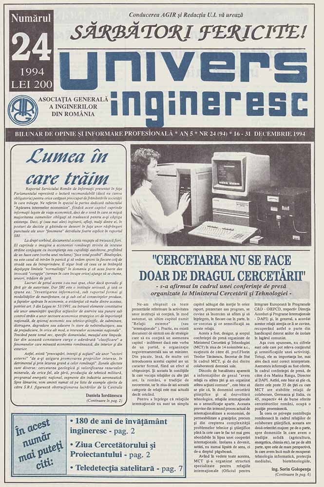 Univers ingineresc, V, nr. în TOM: 24, 1994