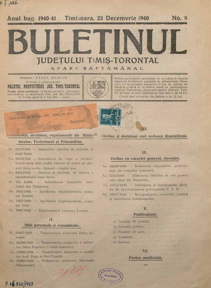 Buletinul Județului Timiș-Torontal, XXI, nr. în TOM: 9, 23 decembrie 1940, 1940