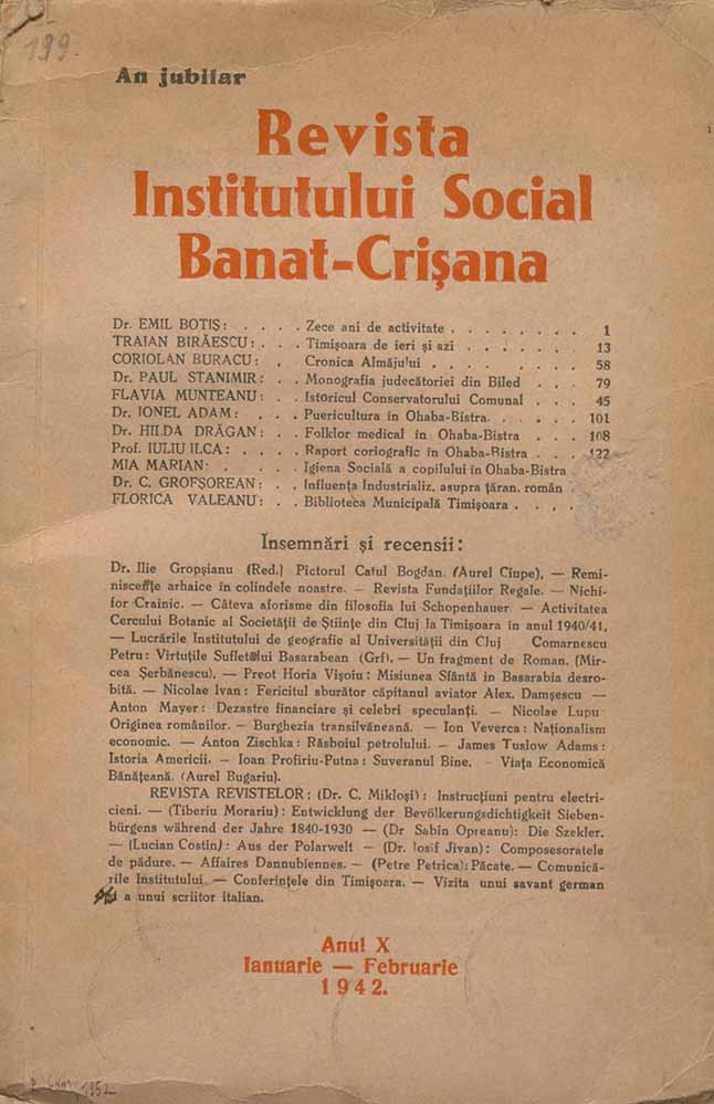 Revista Institutului Social Banat-Crișana, X, ianuarie-februarie, 1942