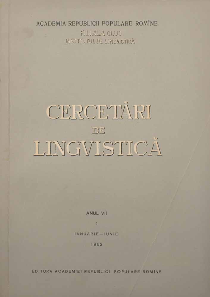 Cercetări de lingvistică, VII, nr. în TOM: 1, ianuarie-iunie, 1962