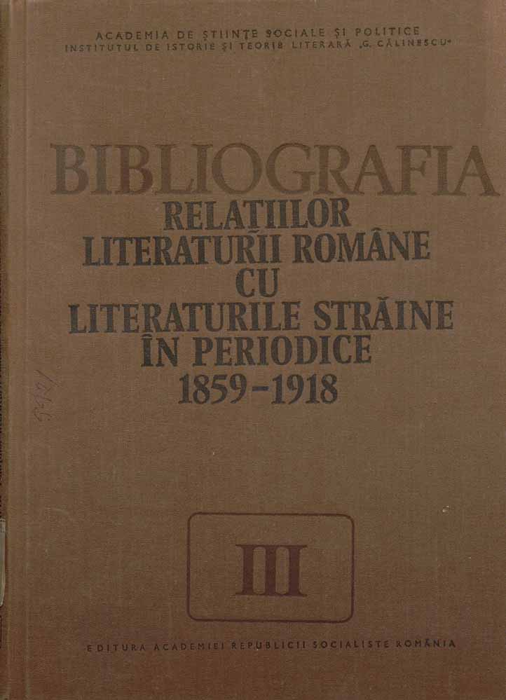 Bibliografia relațiilor literaturii române cu literaturile străine în periodice este unul dintre cele mai vechi, ample și riguroase proiecte desfășurate de-a lungul anilor în Institutul de Istorie și Teorie Literară „G. Călinescu” al Academiei Române. Proiectul oferă o analiză detaliată a influențelor reciproce dintre literatura română și literaturile străine, evidențiind articole, studii și publicații relevante din periodicele vremii.
